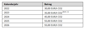 Die Entwicklung des CO₂-Preises / CO₂-Bepreisung