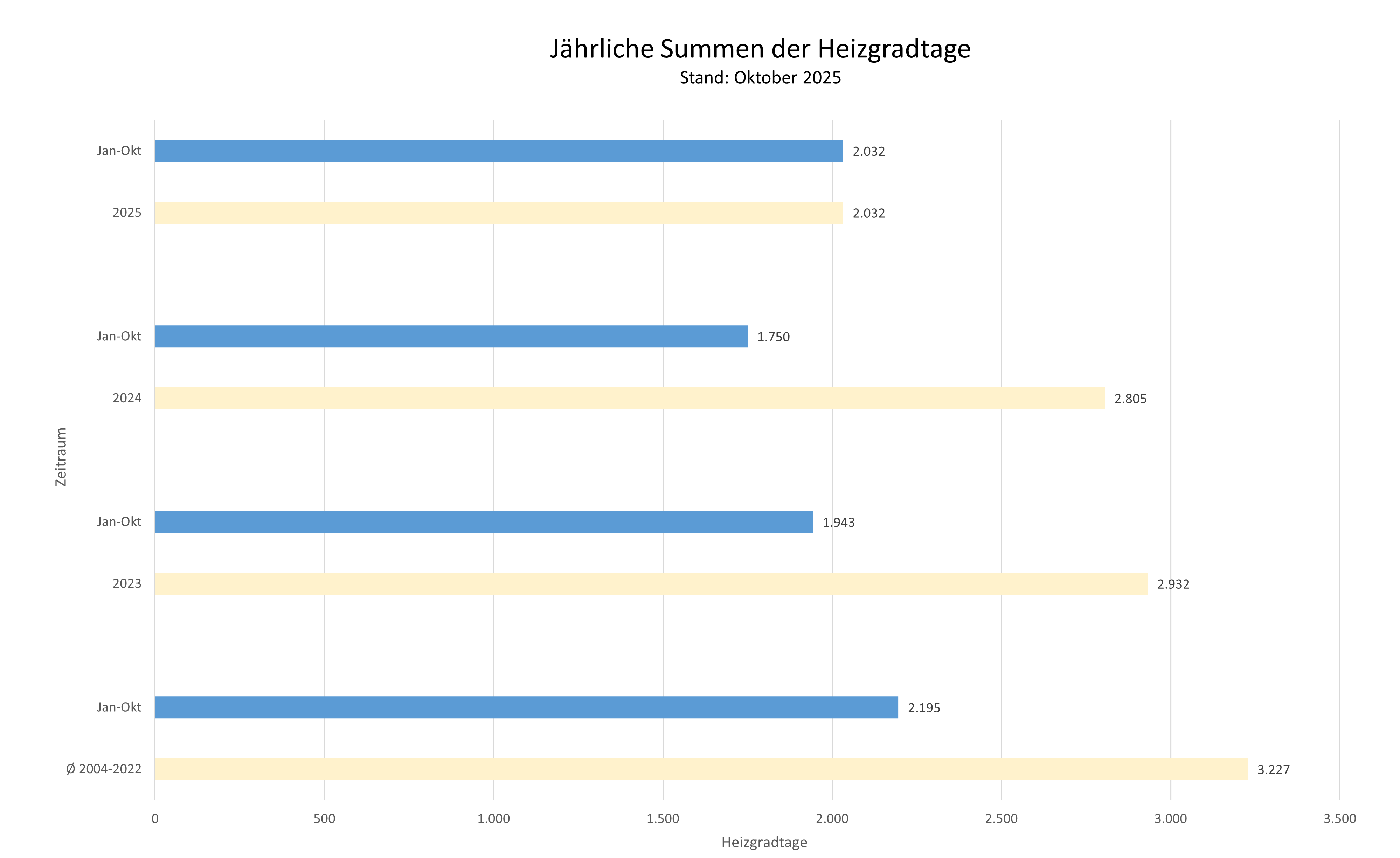 Je höher der Wert der Heizgradtage einer Heizperiode ist, desto höher ist der Energieverbrauch.