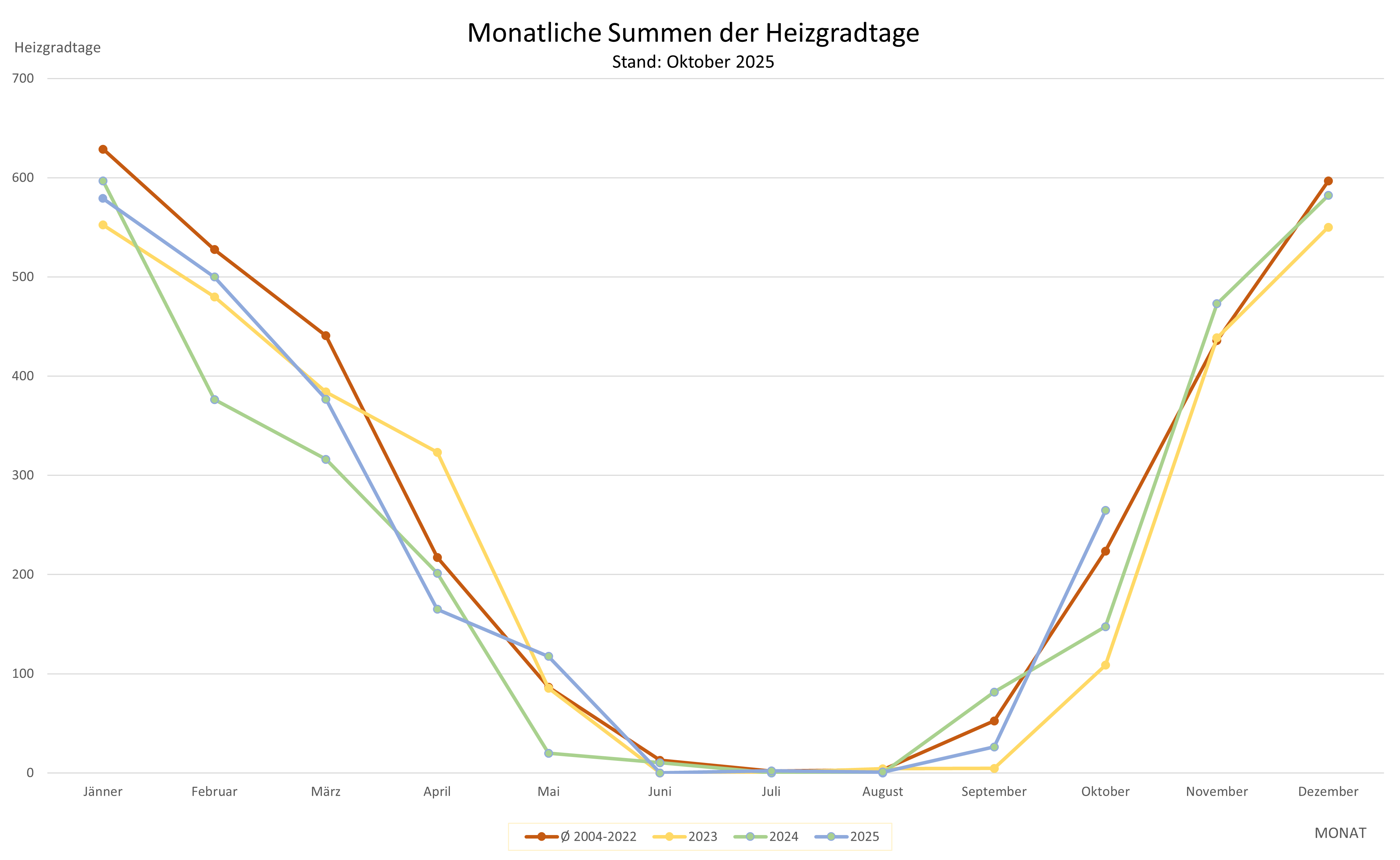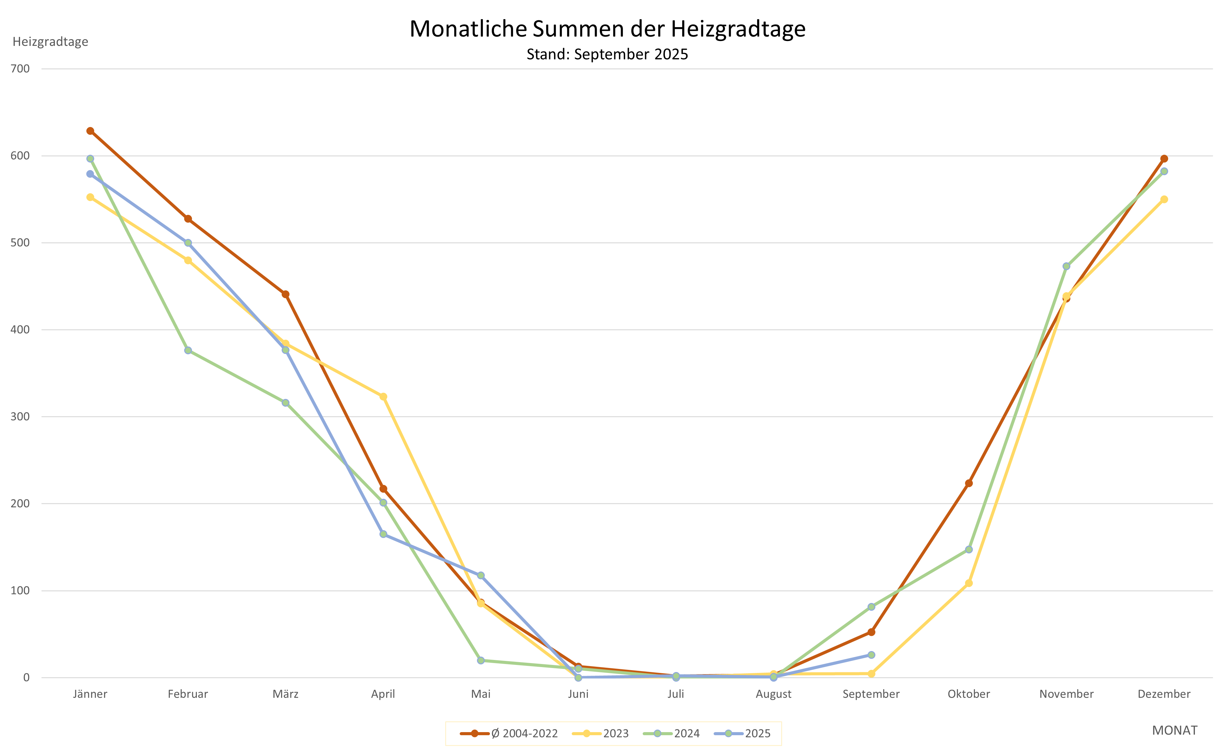 Grafische Darstellung der Heizgradtage (Durchschnitt Österreich):